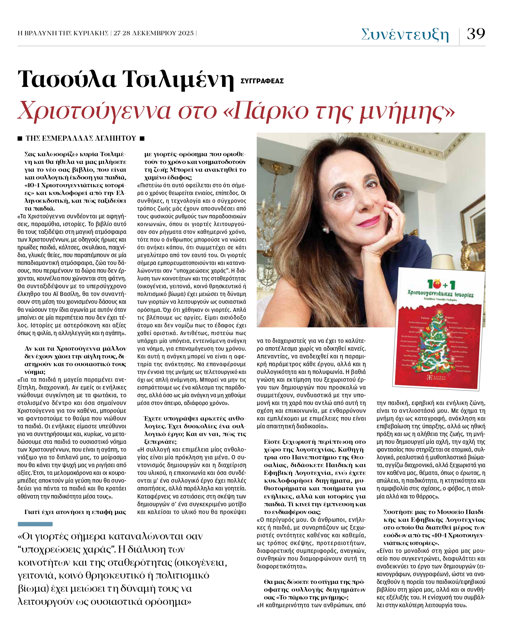 Συνέντευξη της Τασούλας Τσιλιμένη στο περιοδικό VOLOS OUT (Δεκέμβριος 2025) για τον συλλογικό τόμο "10+1 Χριστουγεννιάτικες ιστορίες".