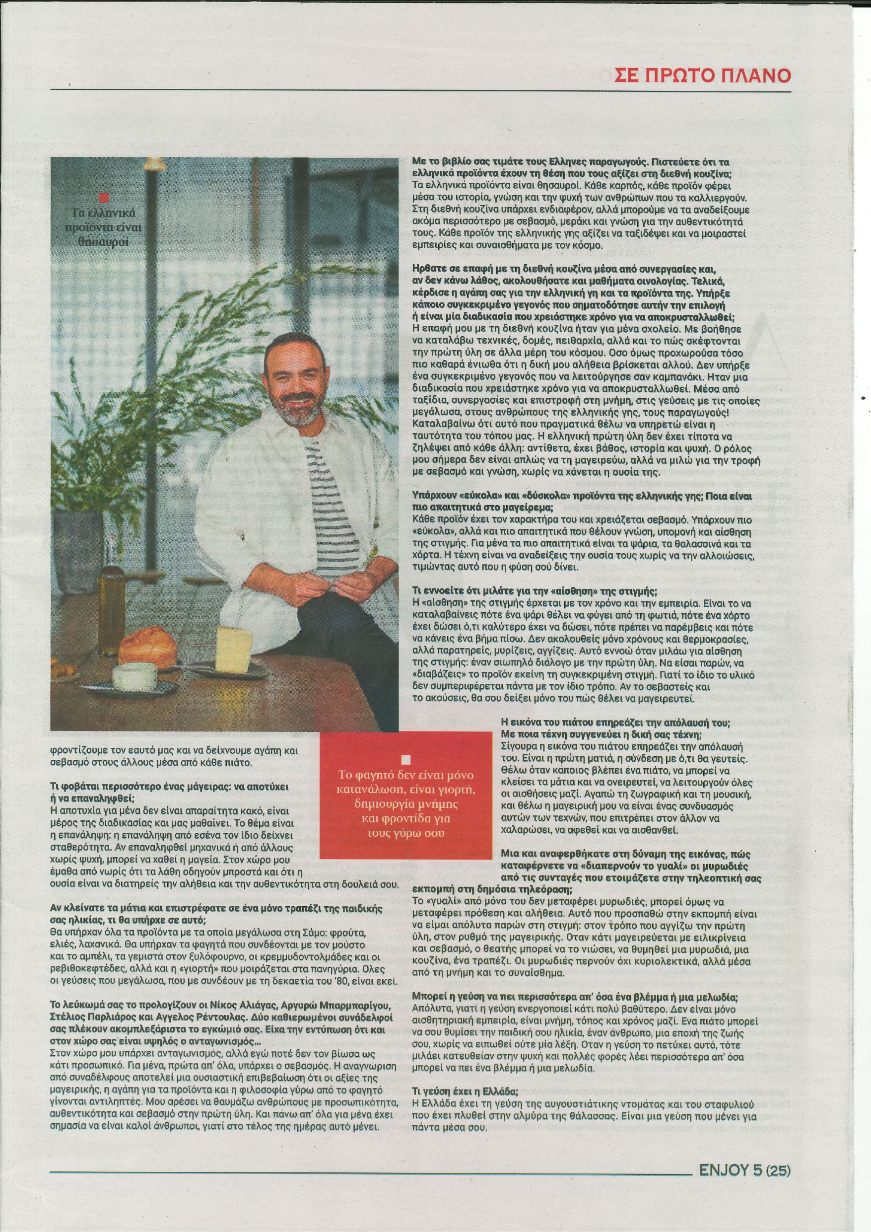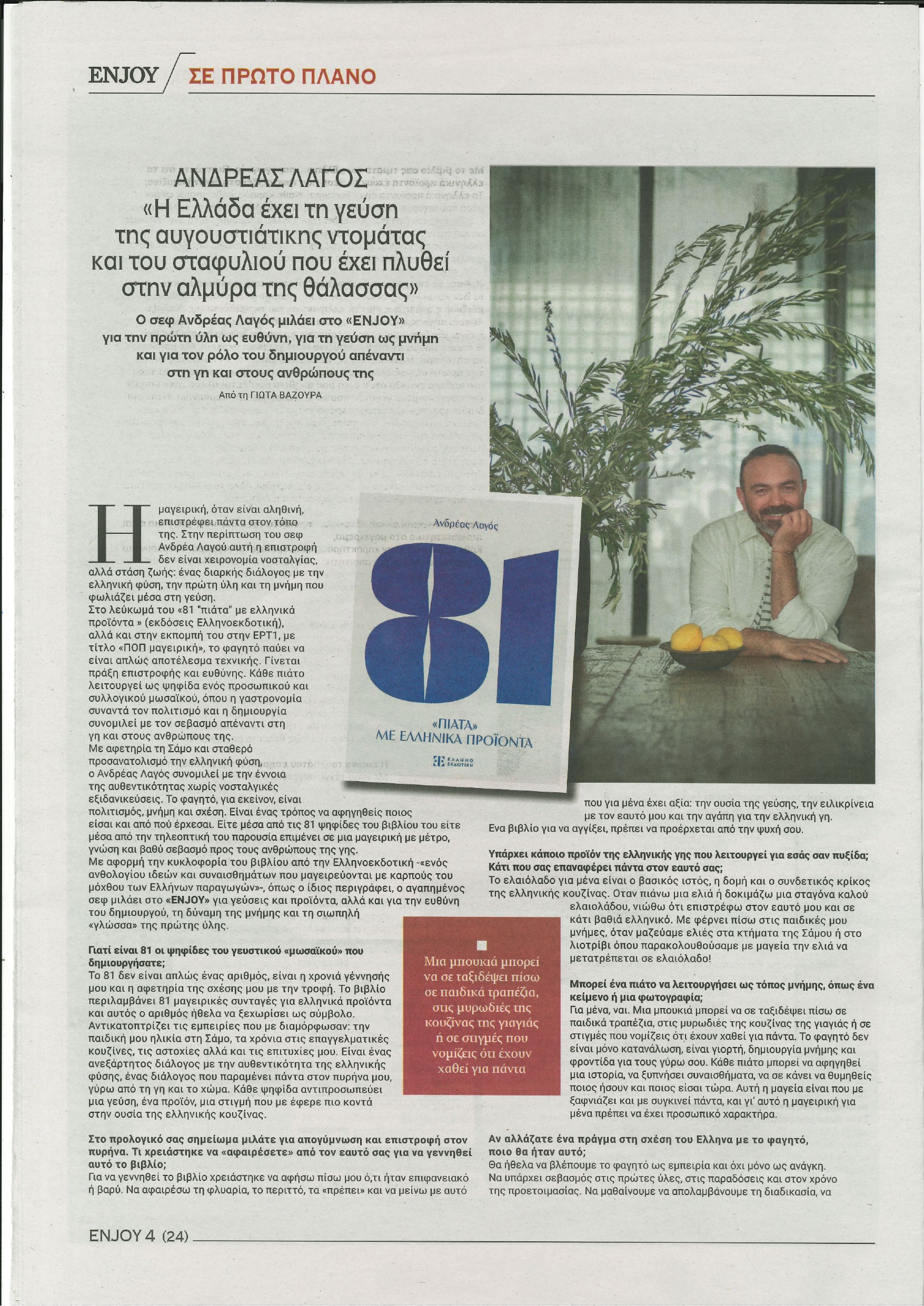 Συνέντευξη του Ανδρέα Λαγού με την υπογραφή της Γιώτας Βαζούρα, στο πολιτιστικό ένθετο Enjoy