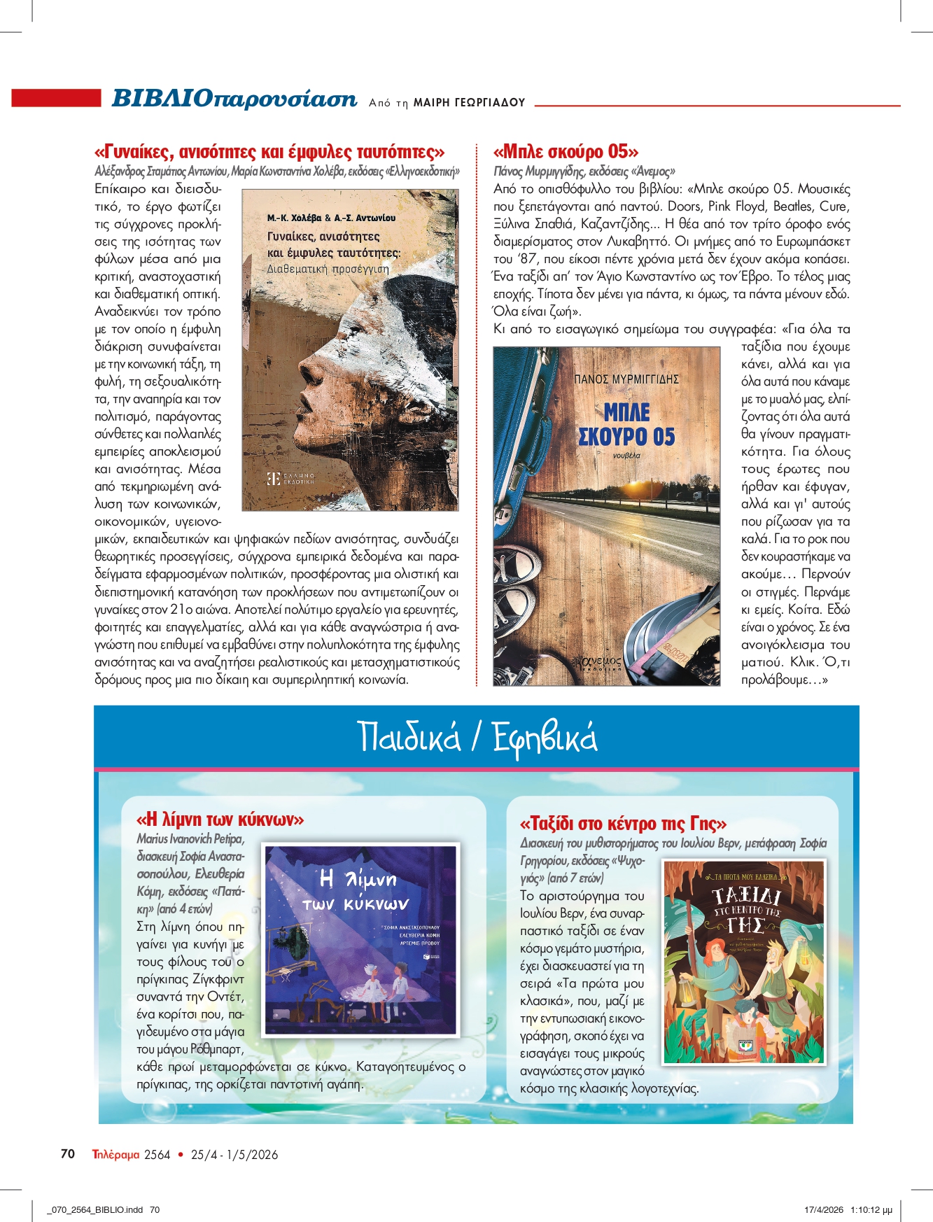Παρουσίαση του "Γυναίκες ανισότητες και έμφυλες ταυτότητες" στη σελίδα βιβλίου που επιμελείται η Μαίρη Γεωργιάδου στο περιοδικό ΤΗΛΕΡΑΜΑ.