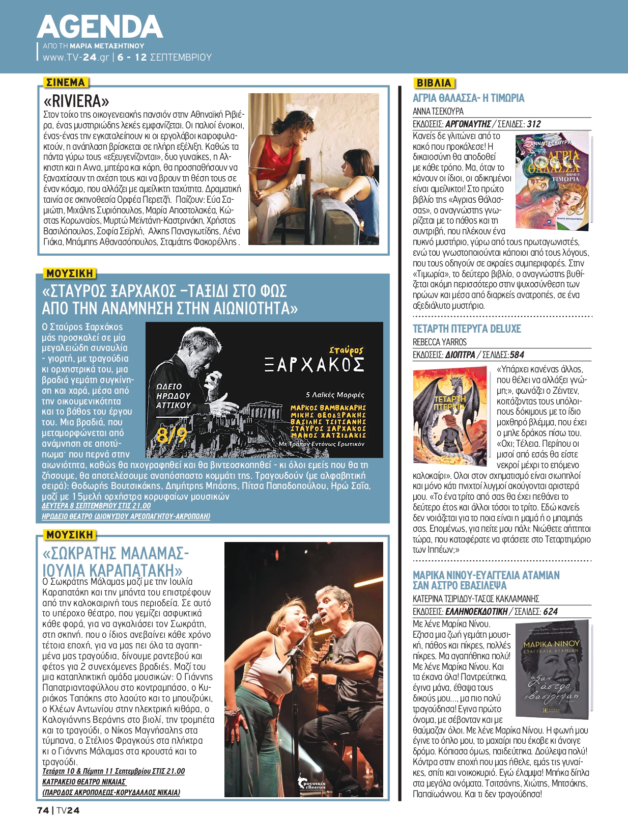 Το βιβλίο για την Μαρίκα Νίνου στο εβδομαδιαίο πανελλαδικό περιοδικό  TV 24 (Τεύχος 761. (6-12 Σεπτεμβρίου 2025)