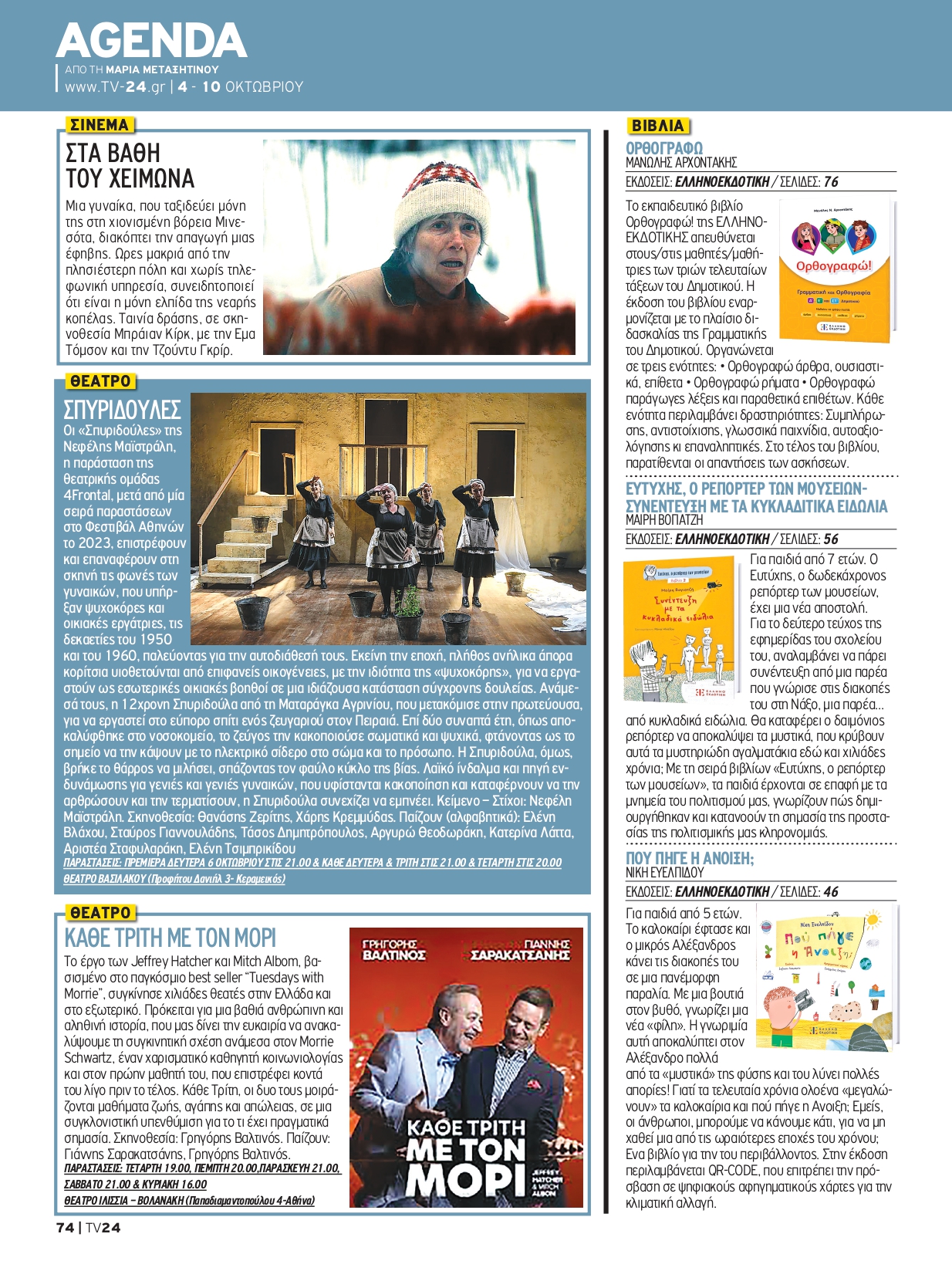 στην ατζέντα πολιτισμού του περιοδικού TV 24 (04-10/10/2025)