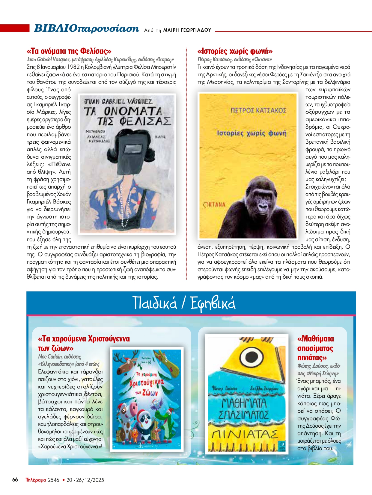 Το περιοδικό ΤΗΛΕΡΑΜΑ προτείνει τα "Χαρούμενα Χριστούγεννα των Ζώων" στη σελίδα βιβλίου που επιμελείται η Μαίρη Γεωργιάδου