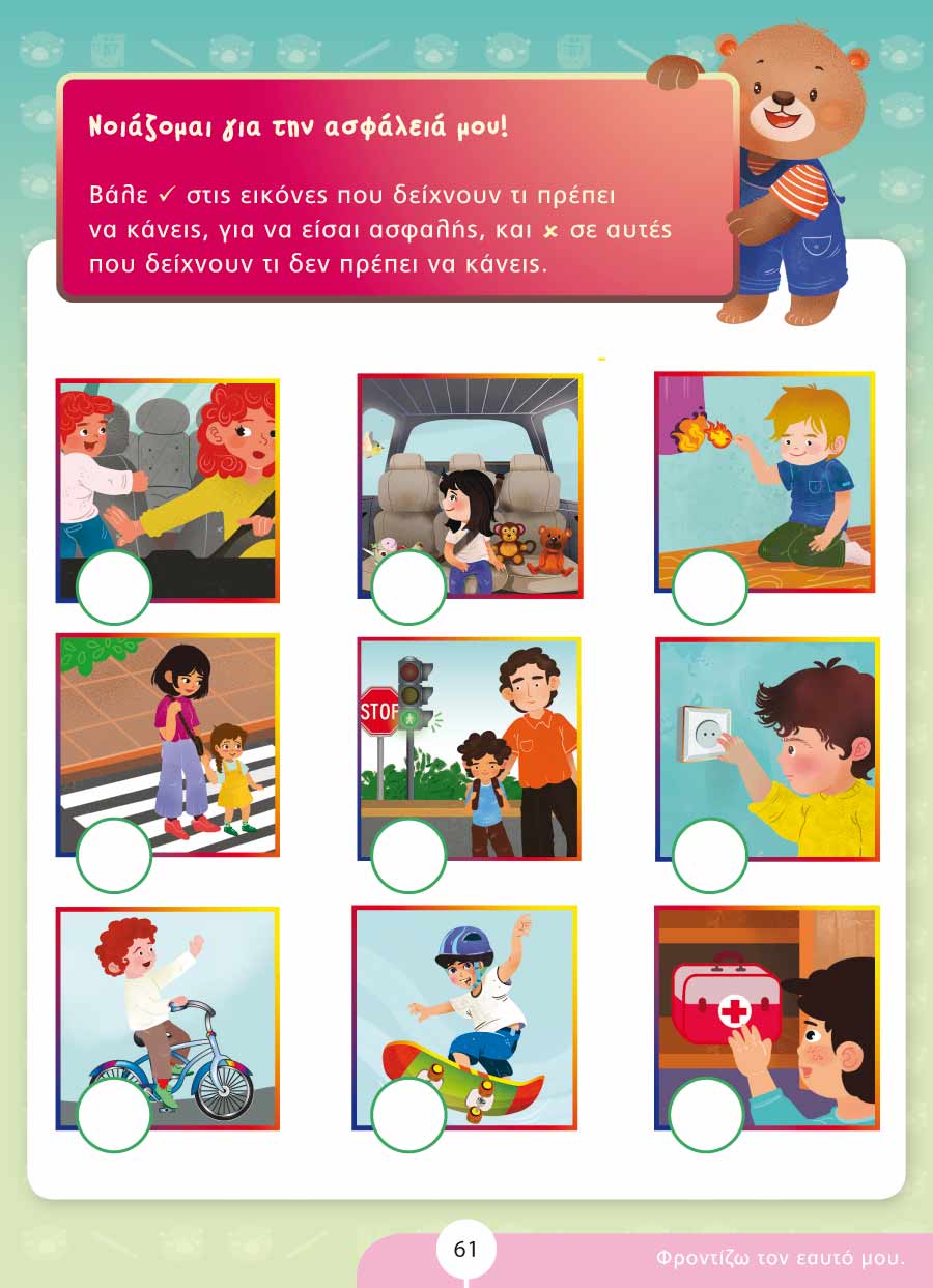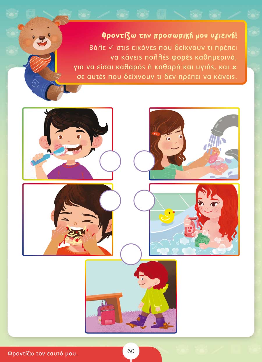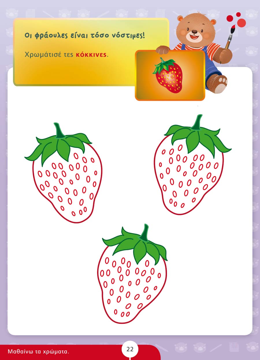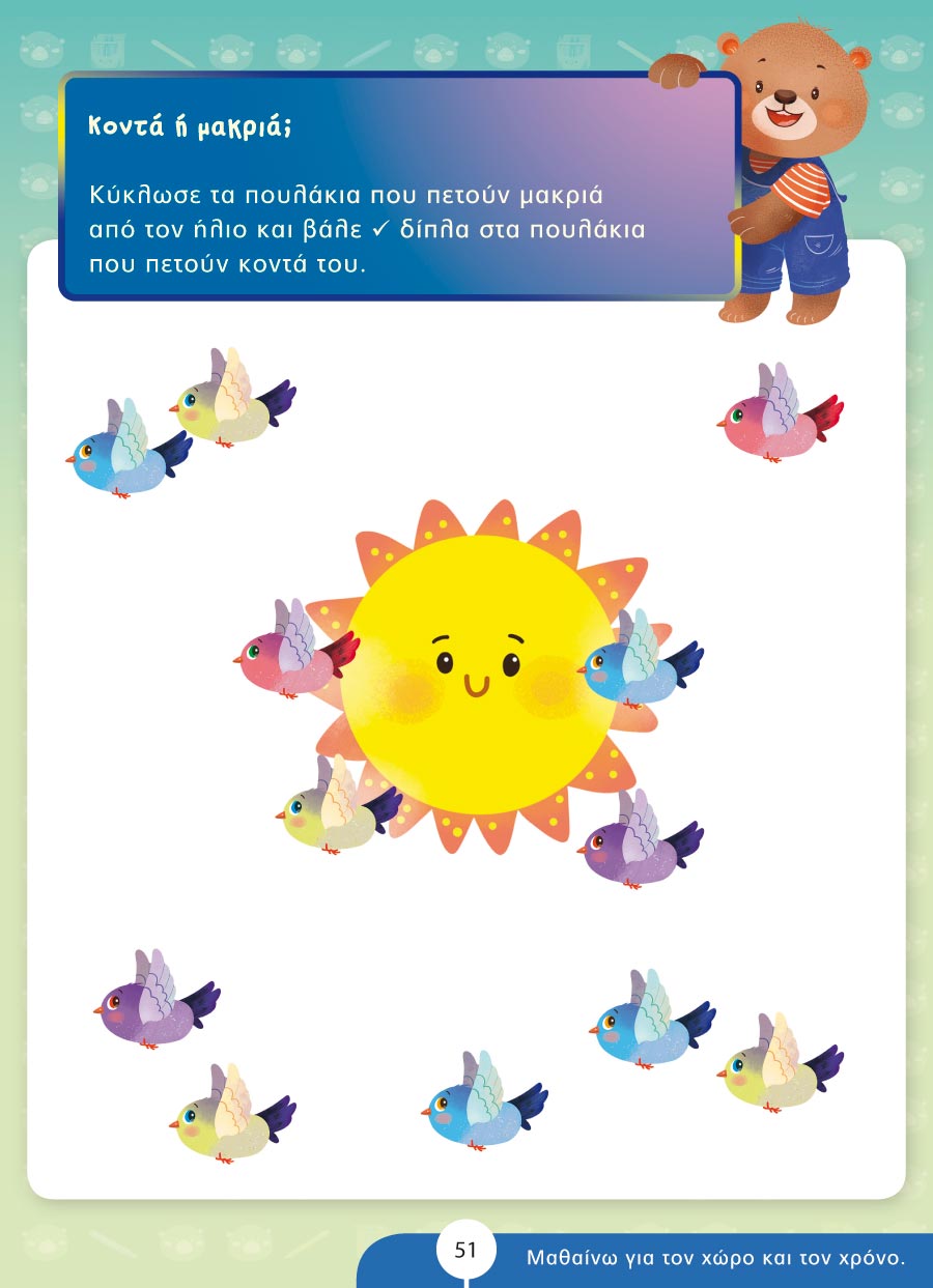Με τις δραστηριότητες του βιβλίου, που πλαισιώνονται από πλούσια εικονογράφηση, τα παιδιά αναπτύσσουν τη δημιουργικότητα και τη φαντασία τους, εξασκούν την παρατηρητικότητά τους και τη λεπτή κινητική δεξιότητα της γραφής.