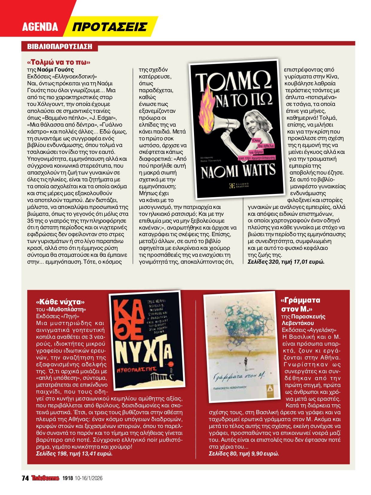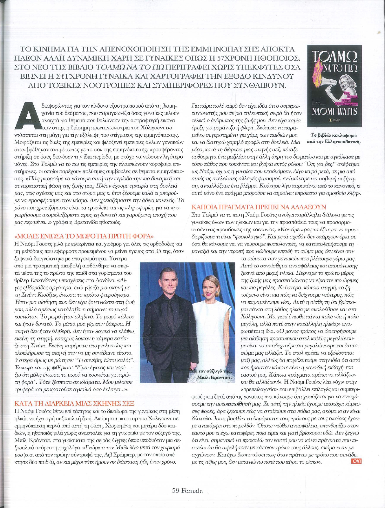Ολοσέλιδη παρουσίαση του βιβλίου της Ναόμι Γουότς "Τολμώ να το πω" από τη δημοσιογράφο Κυριακή Τσολάκη